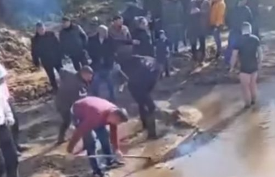Во село Сушица, во општина Струмица, верниците доживеаа необична сцена за празникот Водици – чесниот крст, по традиционалното фрлање во реката, најверојатно пропаднал во земјата, па присутните веднаш почнаа да го бараат со лопати.